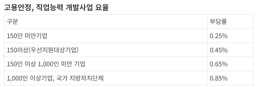 ✔️ 고용안정 직업능력개발 사업 : 사업자 부담 (0.25%~0.85%)